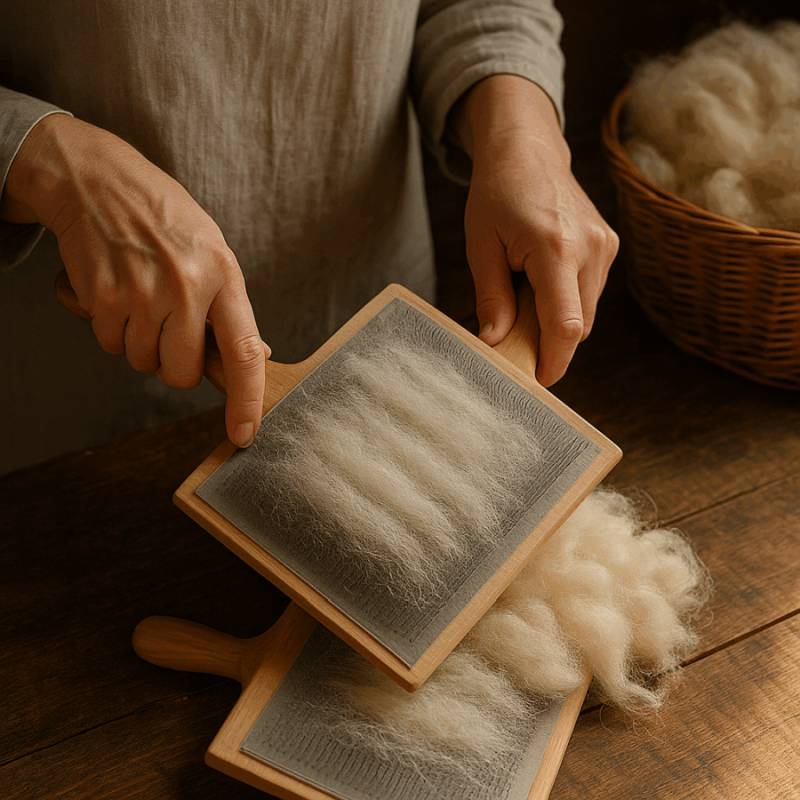 -Kártolt gyapjú: a szálakat keresztirányban is rendezik, így bolyhosabb, melegebb és lazább szerkezetű fonal jön létre. Ez ideális kabátokhoz, pulóverekhez, téli szoknyákhoz, ahol a hőérzet nagyon fontos.