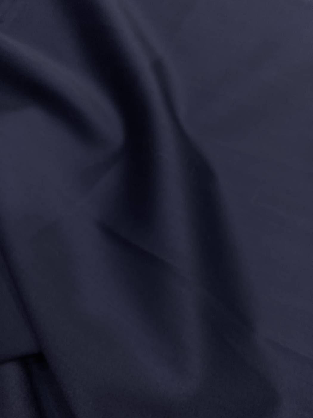 Sötétkék, elasztikus, prémium minőségű vékony gyapjú szövet. Finom felületével, magas fényével. könnyed esésével és természetes légáteresztő tulajdonságaival ideális választás egész évben hordható, kifinomult ruhadarabokhoz. Letisztult megjelenése és kellemes tapintása biztos alapot ad precíz szabású, kényelmes viseletek készítéséhez.
