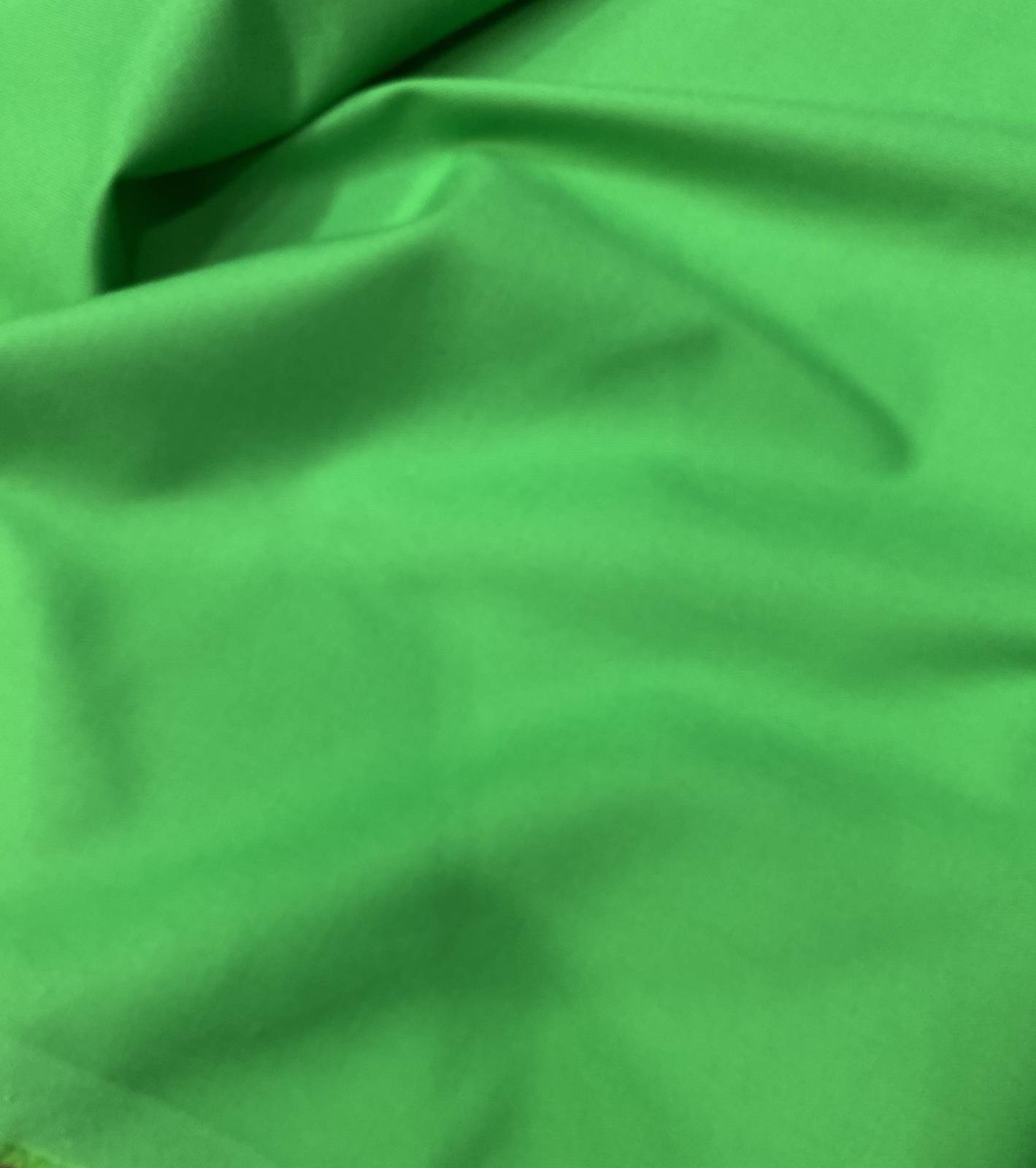 Ez a középvastag, elasztikus pamut szatén sima felületű, finoman fénylő anyag, kellemes tapintással és stabil tartással. Színe intenzív, friss smaragdzöld, amely a szaténkötésnek köszönhetően mozgás közben mélyebb árnyalatokat is megmutat. A pamuttartalom komfortos viseletet ad, míg az elasztikus szálak biztosítják a kényelmes illeszkedést.