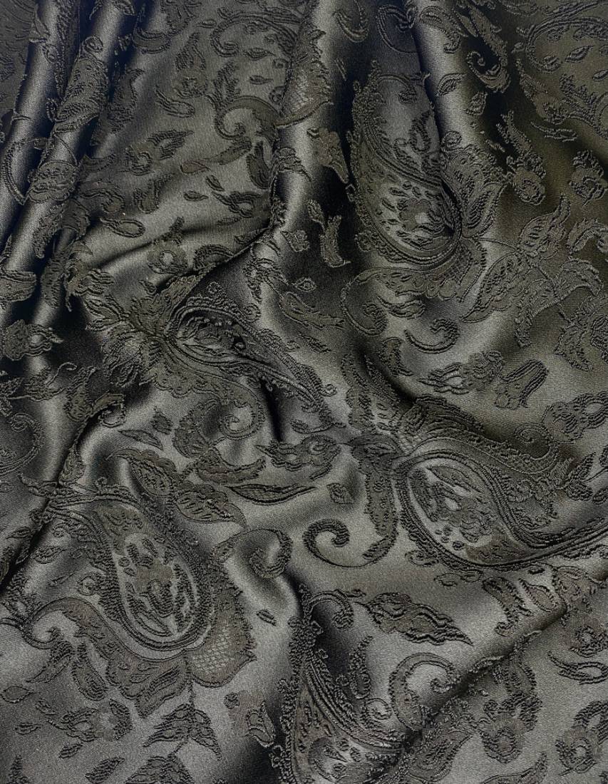 Elegáns, középvastag, elasztikus olasz brokát fényes–matt felületváltással és finom kasmír( paisley) mintával.                                                    Kifinomult, mégis karakteres választás alkalmi ruhákhoz, zakókhoz, kosztümökhöz vagy fellépő öltözetekhez.                                                  Tartása tökéletes, lágy fénye exkluzív megjelenést kölcsönöz minden darabnak.