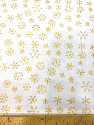 Ez a gyönyörű, fehér alapú, arany hópelyhes pamut karton igazi ünnepi hangulatot varázsol otthonodba. Kiváló minőségű, közepes vastagságú, 100% pamut anyag, amely könnyen kezelhető, jól vasalható és formatartó – ideális választás minden kreatív karácsonyi projekthez.