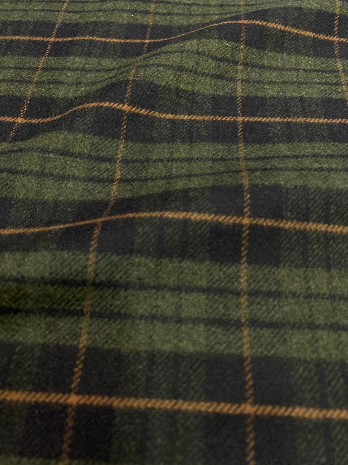 Magas minőségű, meleg és puha flanell anyag, sűrű szövésű, kellemesen bolyhozott felülettel. Kiváló hőtartása miatt ideális őszi–téli ruhadarabokhoz. A mélyzöld alapszínű, klasszikus kockás minta időtálló, elegáns megjelenést ad, férfi és női viselethez egyaránt.