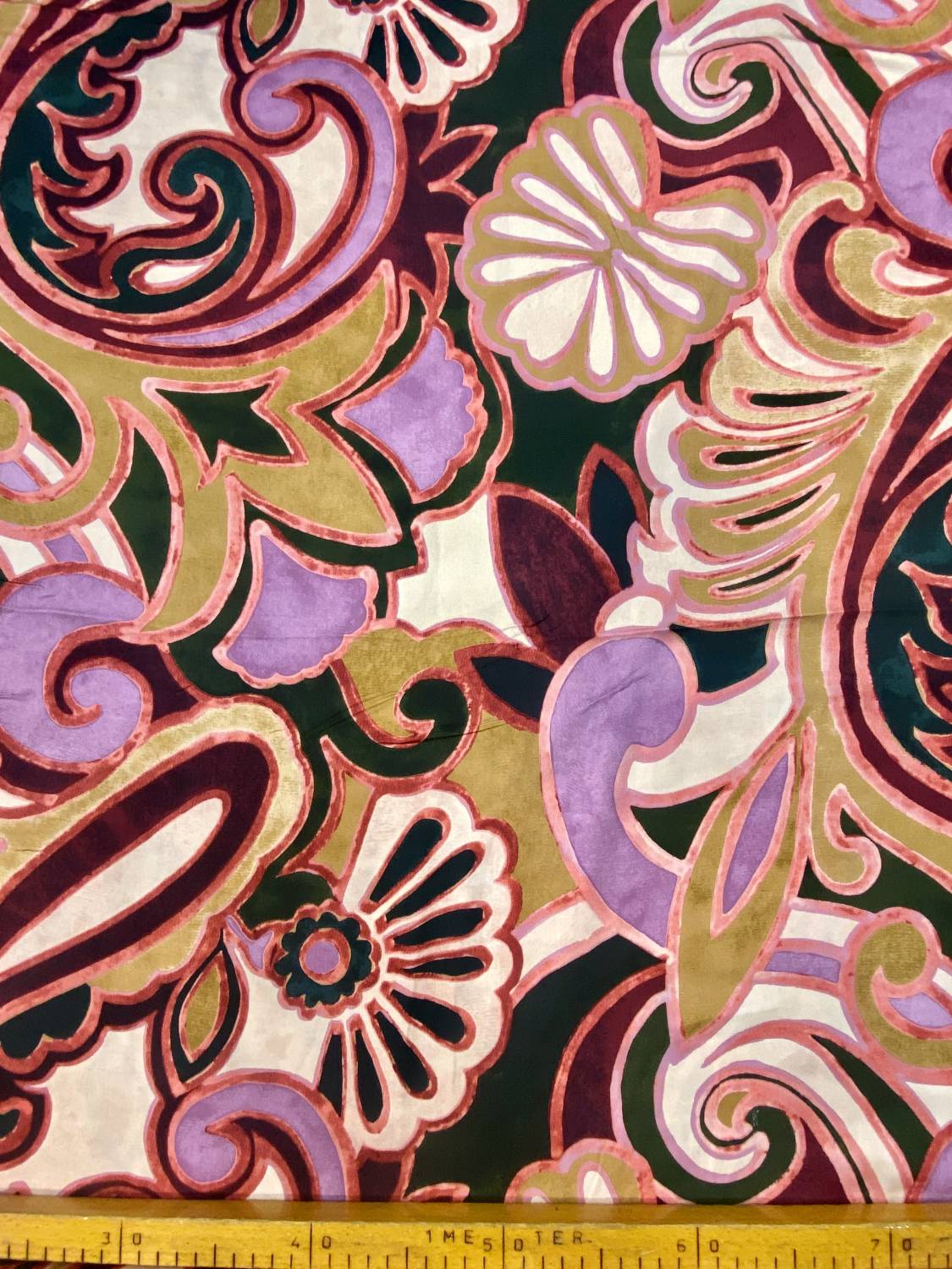 Lágy esésű, kellemes tapintású olasz viszkóz flokon, amelyet dekoratív barokk hangulatú virág- és indaminta díszít. A sötétzöld alapot mályva, rózsaszín és aranyos árnyalatok élénkítik, így a szövet különösen karakteres és elegáns megjelenésű.