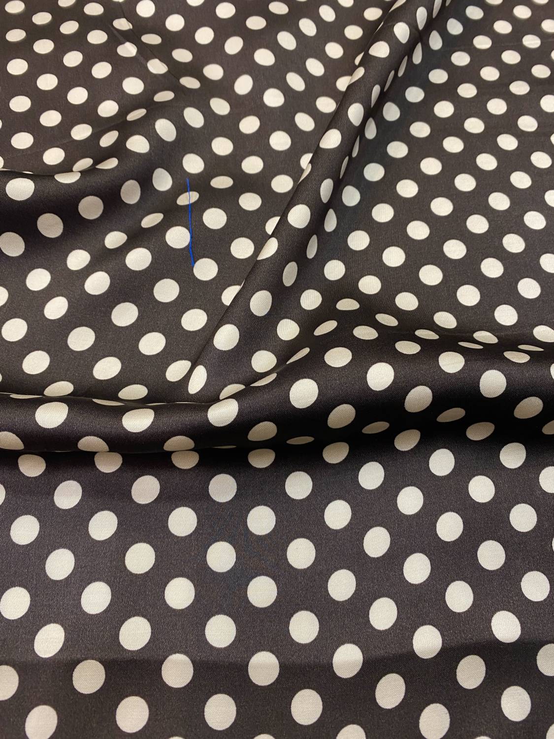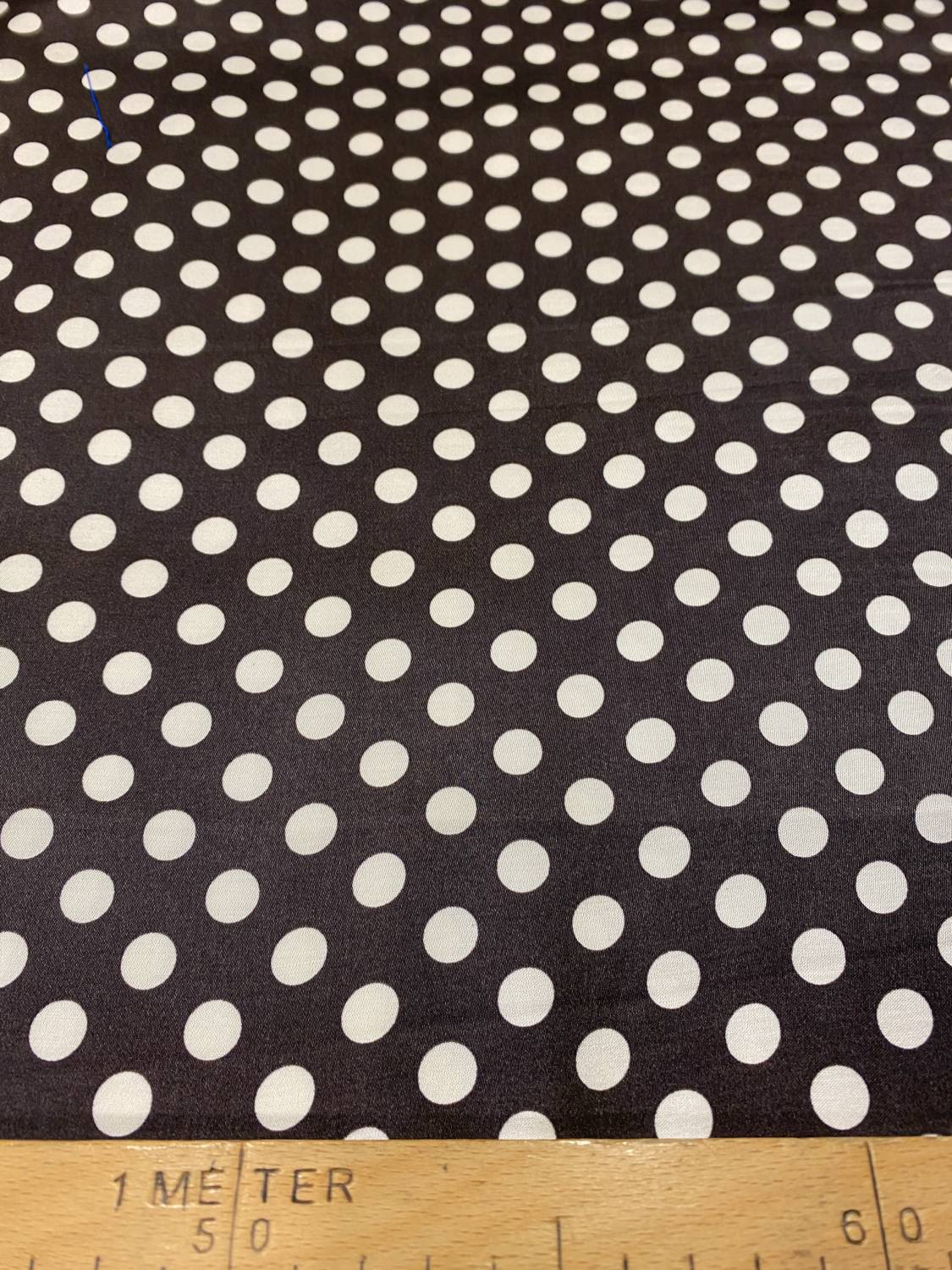 Ez a finom, selymes tapintású olasz viszkóz flokon lágy esésével és kellemesen könnyű szerkezetével elegáns viseletekhez ideális. A mély barna alapon elhelyezkedő elefántcsontszínű, kb. 1 cm méretű pöttyök klasszikus, időtálló karaktert adnak az anyagnak, amely egyszerre nőies és játékosan retró hangulatú.