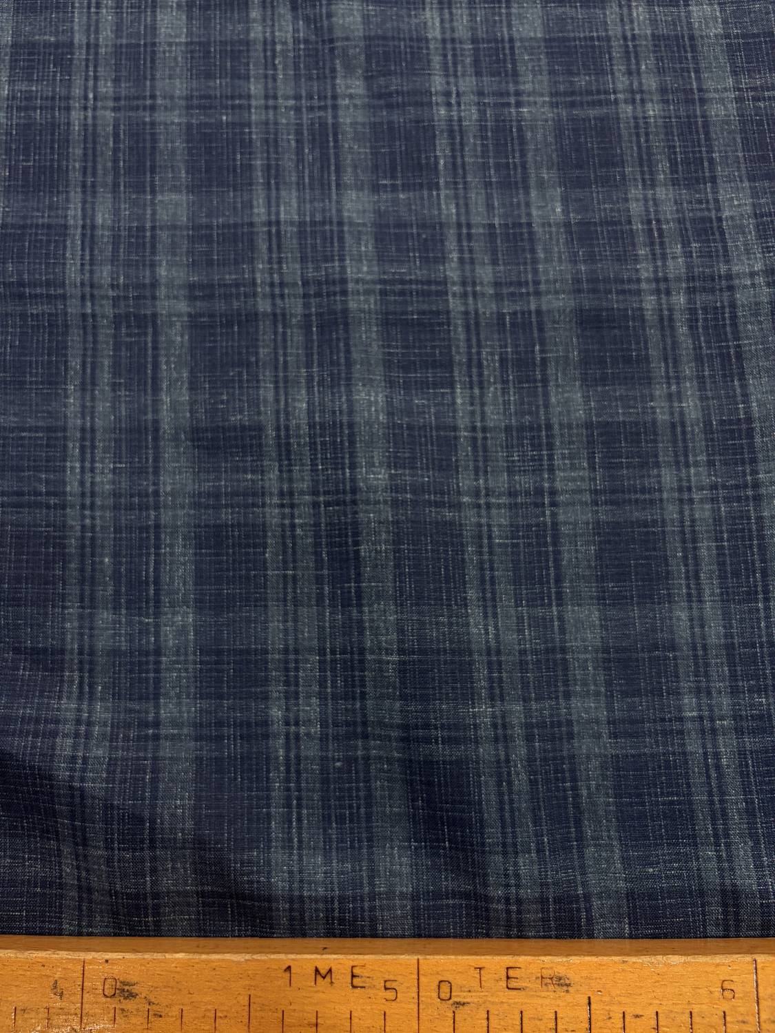 Természetes hatású, prémium minőségű 100% organikus pamut szövet, finom melírozott kék kockás mintával, amely elegáns, mégis könnyed nyári megjelenést biztosít.