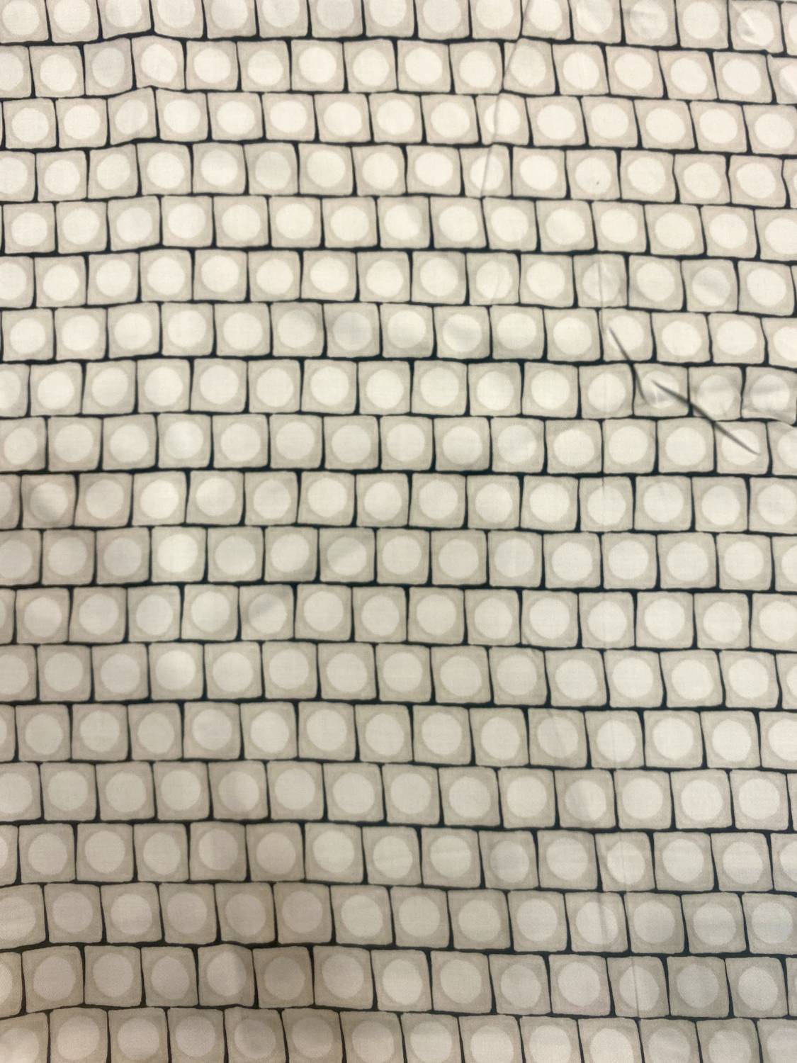 Törtfehér-fekete geometrikus kockamintás viszkóz flokon