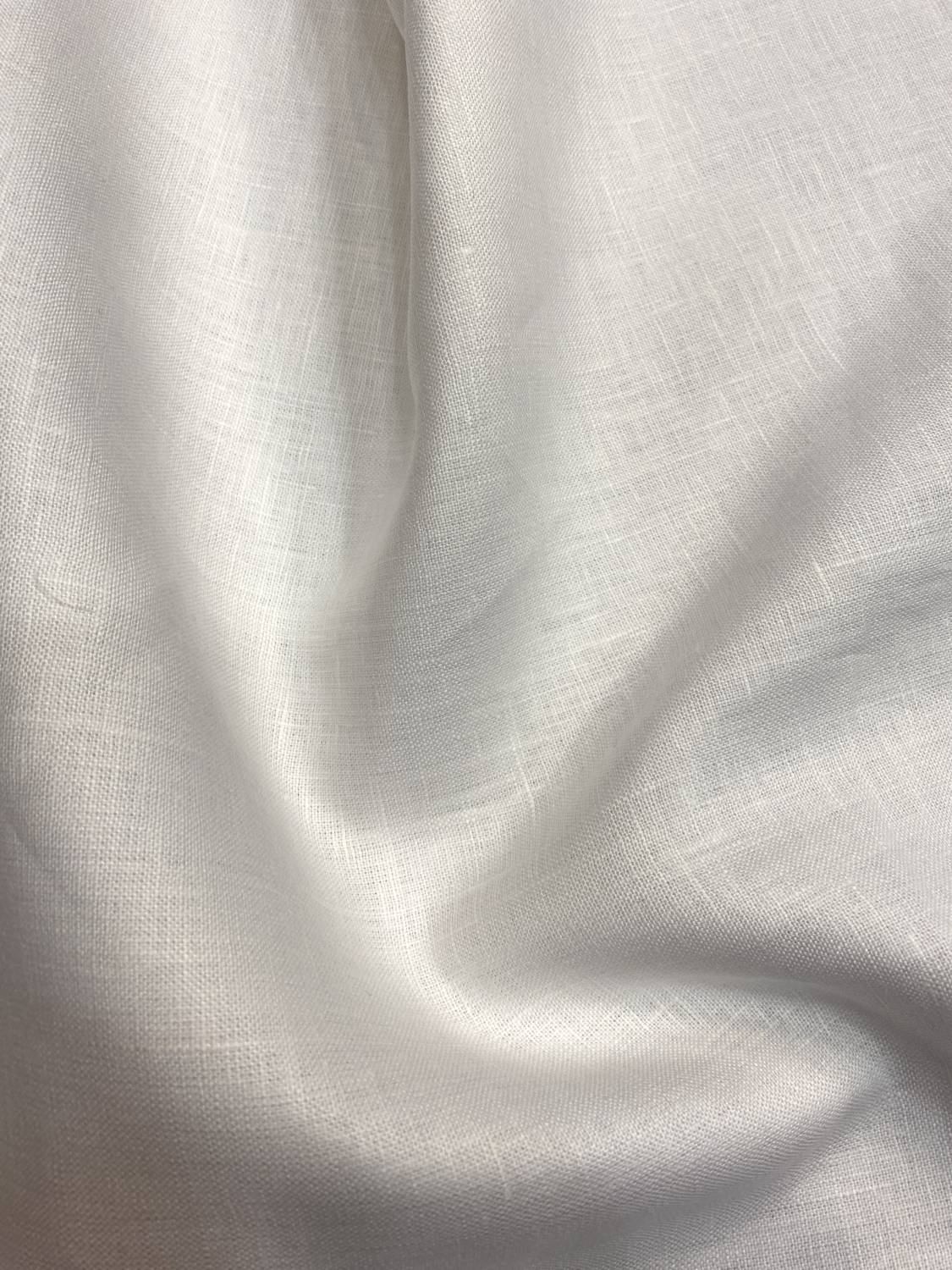 Törtfehér len, kellemes tartást adó, vékony, kissé merev fogású len anyag.: friss, természetes érzetű, jól szellőzik, és szépen hozza a lenre jellemző karaktert. Árnyalata letisztult, mintázata egyszínű, finoman rusztikus, lenes szálrajzzal, ami elegánsan “élővé” teszi a felületet.