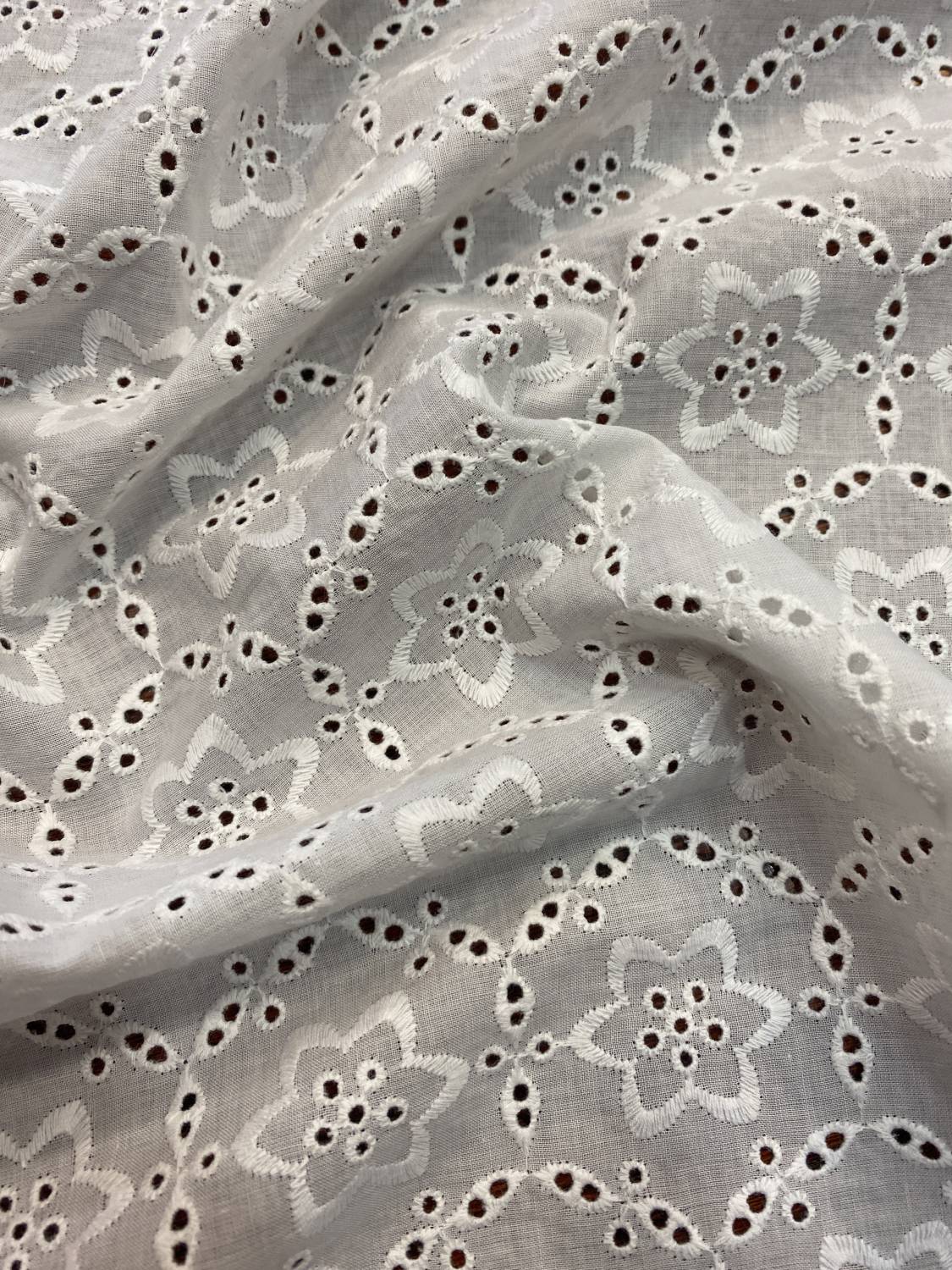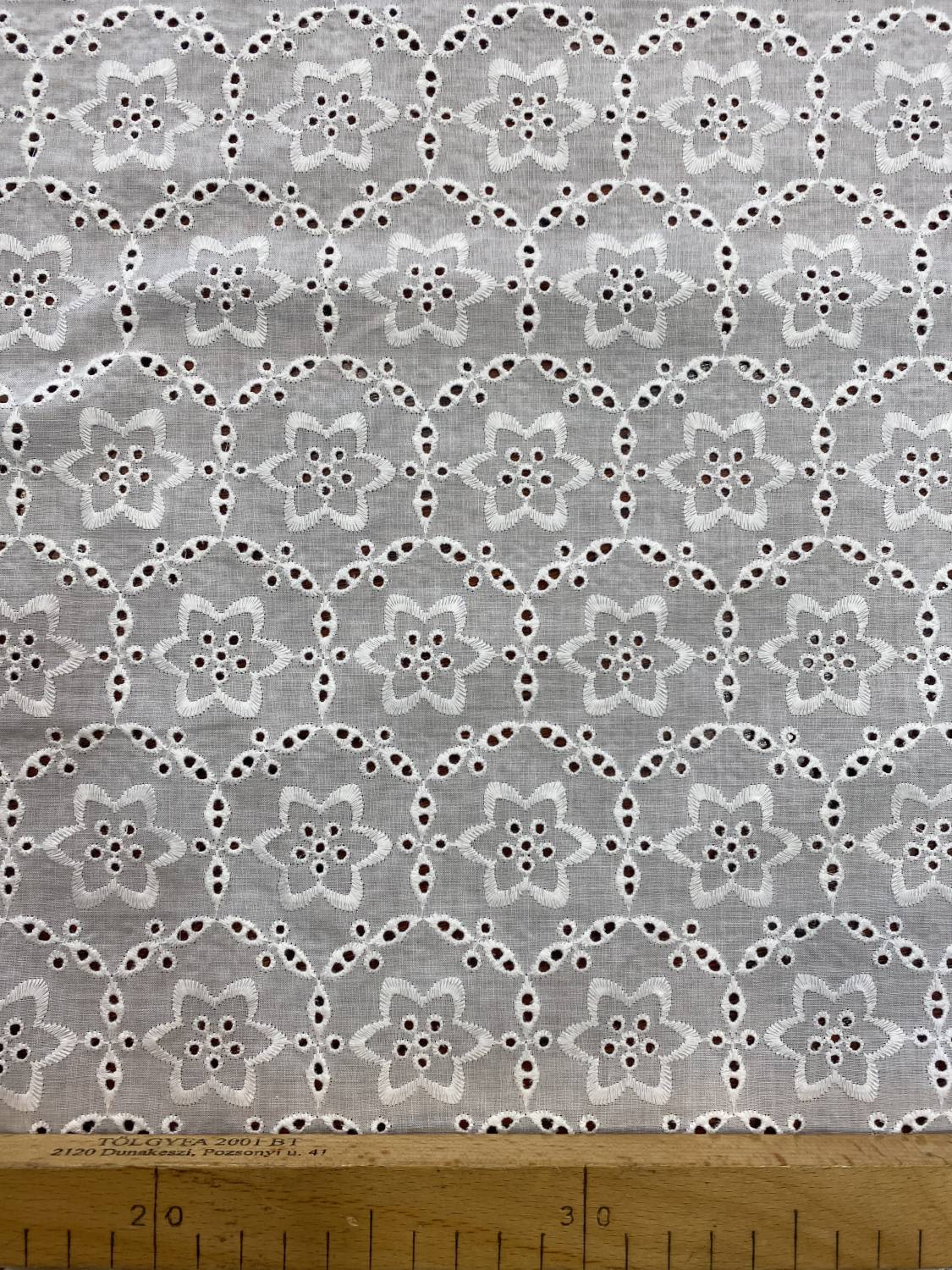 Ekrü geometrikus virágmintás pamut madeira – lyukhímzéses pamut anyag6980 Ft